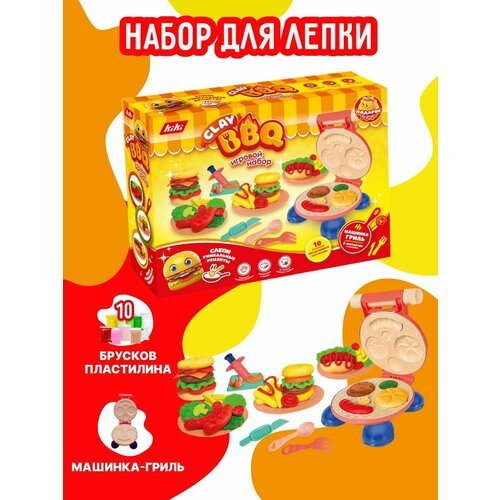 Детский развивающий набор для лепки Clay BBQ Клэй Барбекю - это увлекательная игра и развитие творческих навыков в одной коробке. С набором для приготовления вкусных и разнообразных блюд из легкого пластилина ваш малыш почувствует себя настоящим поваром. В игровой набор входят все необходимые аксессуары и инструменты, чтобы приготовить много блюд из пластилина: 10 брусочков пластилина, машинка-гриль на 5 формочек, скалка для раскатки пластилина, кондитерский шприц, моделирующий нож, вилка, ложка, щипцы, посуда. Для декора блюд в наборе есть стеки, кисточка, лак, пенопластовые шарики, глиттер (блестки), фруктики, помпоны. Слепи уникальные блюда! Занятия с воздушным пластилином помогает развивать мелкую моторику и воображение, способствуют развитию аккуратности и внимательности. Игровой набор с пластилином долго будет занимать ребенка за счет разнообразия блюд. Воздушный пластилин всегда можно докупить в нашем магазине арт. 187263155. Игровой набор подойдет для игры для девочек и мальчиков - создавая очередную фигурку, блюдо, ваш малыш сможет проявить фантазию, почувствовать себя кондитером или шеф-поваром. Подарочный набор Пластилиновая кухня упакован в красивую подарочную упаковкую Это отличный подарок, набор пластилина точно понравится ребенку и принесет волшебные эмоции и радость не только детям, но и родителям от совместных игр. Все элементы набора изготовлены из безопасных и гипоаллергенных материалов. Пластилин упакован в герметичный пакетик для защиты от высыхания. На открытом воздухе воздушный пластилин Кики (Kiki) начинает застывать на воздухе через 1-2 часа . После высыхания становится твердым и легким, фигурки можно раскрашивать и играть с ними. Сбрызните пластилин водой, чтобы вернуть ему мягкость. Храните пластилин в герметичной упаковке, чтобы сохранить его пластичные свойства до следующей игры. Воздушный пластилин не липнет к поверхностям и не оставляет следов на одежде и мебели. Готовыми фигурками можно играть и устраивать целые представления.
