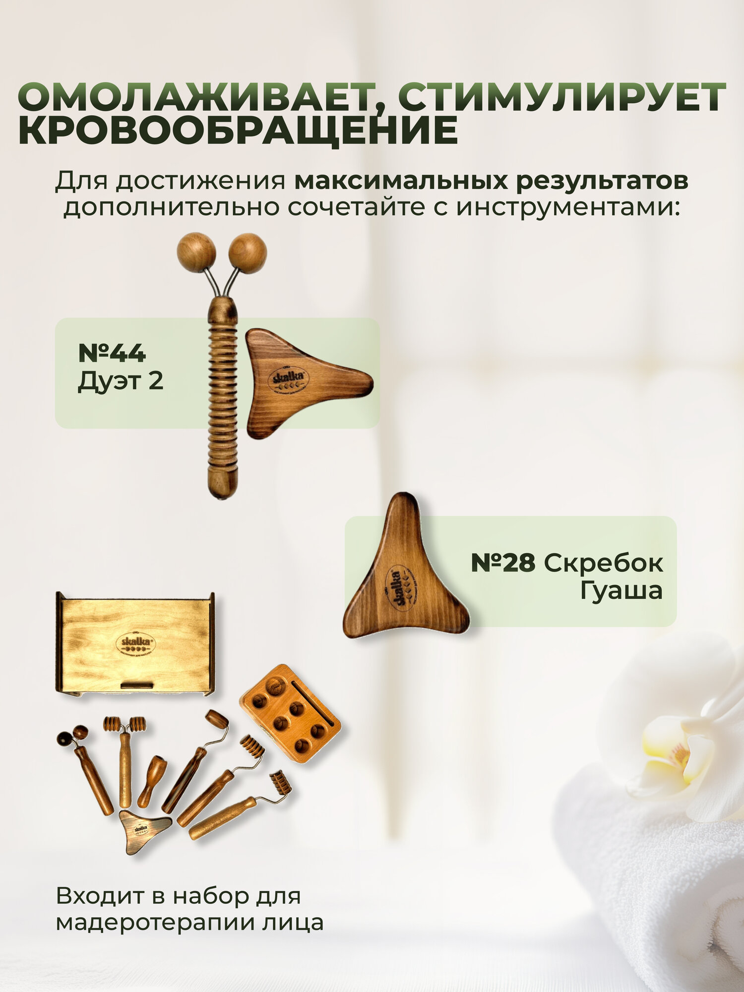 Набор для мадеротерапии лица "Дуэт-1" от Skalka - это комплект из двух деревянных массажеров, предназначенных для профессионального использования и самомассажа в домашних условиях.