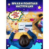 Внутри есть красочная инструкция, подробные обучающие части в ней написаны доступным языком. Обязательно изучите ее перед началом опытов.