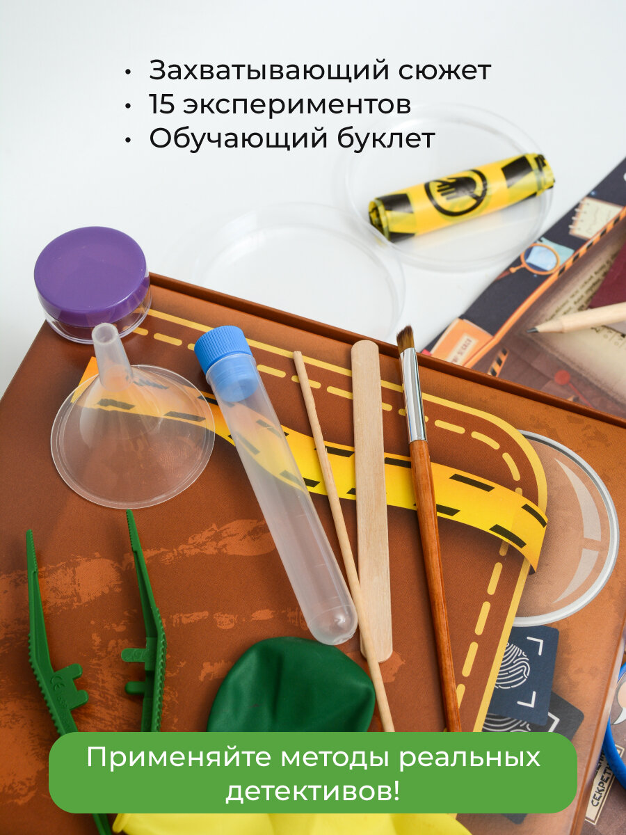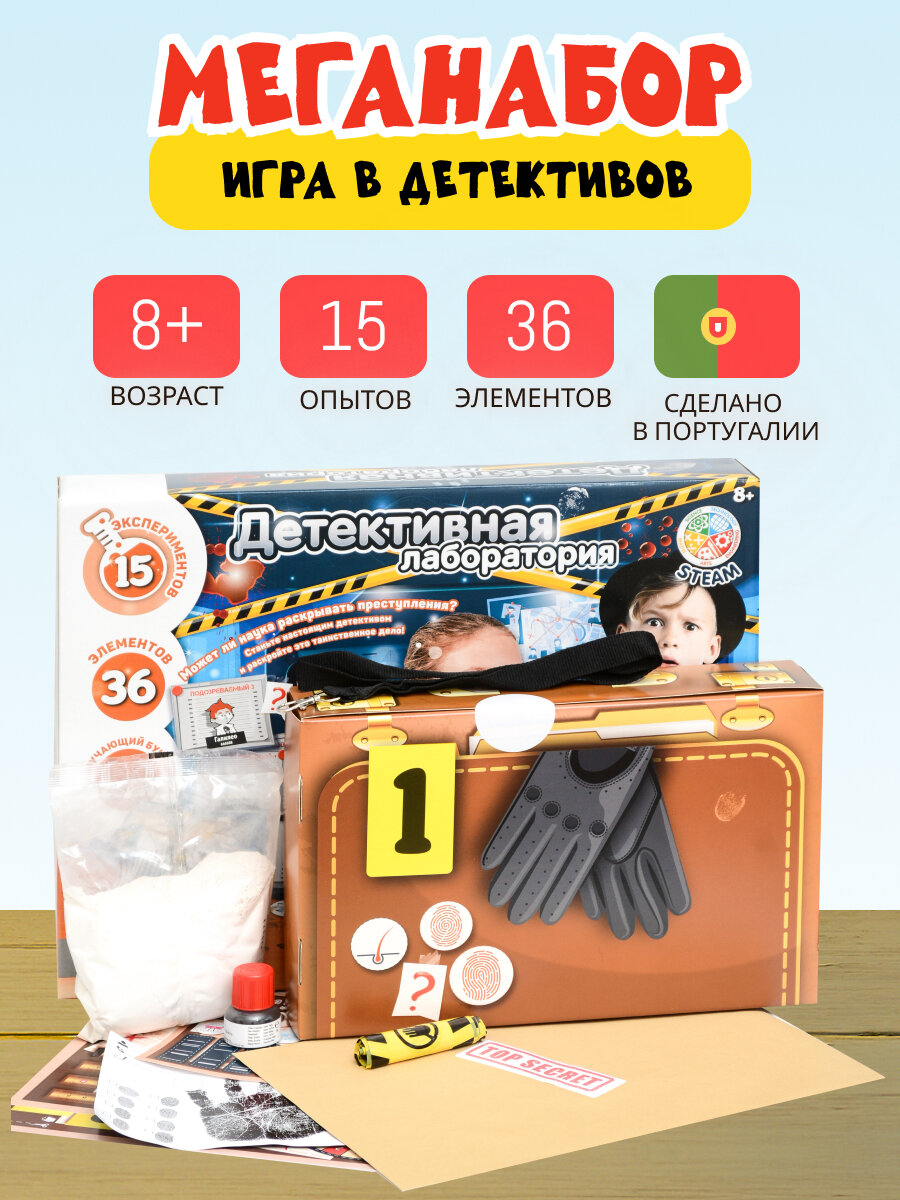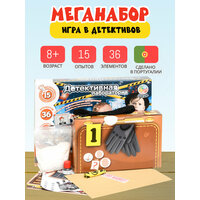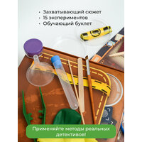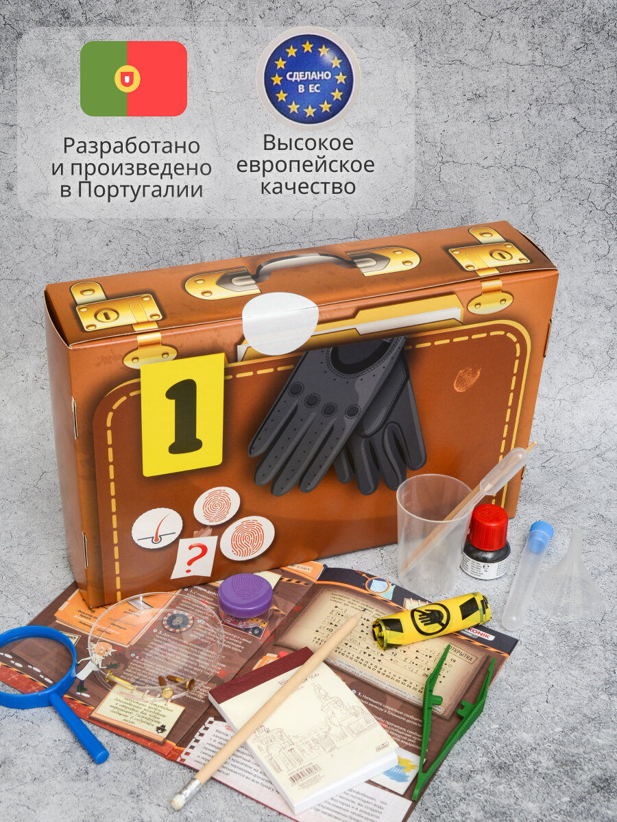 Konik Science Набор для детского творчества Детективная лаборатория Примите участие в секретном расследовании и станьте настоящим детективом вместе с набором «Детективная лаборатория». Создайте свою исследовательскую лабораторию и разгадайте загадку, спрятанную в обучающем буклете, используя настоящие криминалистические методы. В ходе расследования вы научитесь: Выявлять и идентифицировать отпечатки пальцев и отпечатки обуви Отправлять секретные сообщения другим детективам Извлекать и анализировать ДНК И проводить много других секретных экспериментов… Характеристики: 15 экспериментов 36 элементов в наборе Рекомендуемый возраст 8+ В составе набора: 36 страничный обучающий буклет, Сверхсекретный конверт, Лупа, Лента «место преступления», Блокнот детектива, Графитовый порошок, Бумажные фильтры, Деревянная лопатка, Чемоданчик детектива, Пастеровская пипетка, Карточка с отпечатками пальцев, Карточка с графическими элементами, Карточка с сантиметровой лентой и фонариком, Наклейки, Фиксаторы для бумаги, Большой мерный стакан, Шнурок для значка детектива, Пробирка с крышкой, Перчатки, Воронка, Карандаш, Пинцет, Кисточка, Гипс, Баночка с крышкой, Пакет с застежкой, Деревянная палочка, Чашка Петри, Воздушные шары.