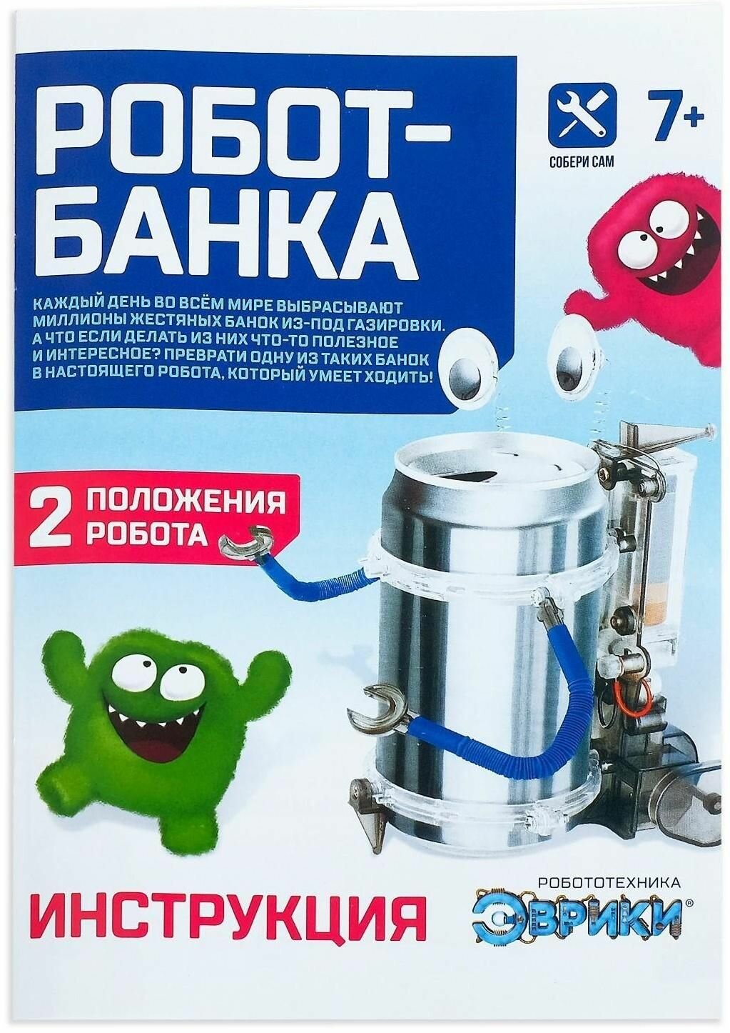 Каждый день во всём мире выбрасывают миллионы жестяных банок из-под газировки. А что если сделать из них что-то полезное? С набором для опытов «Эврики» малыш сможет собрать настоящего робота, который умеет ходить. Для этого понадобится любая железная баночка и детали набора. Робот работает от 1 батарейки AA (в комплект не входит).