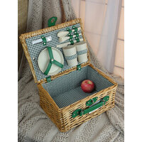 | Подробная комплектация | 1 - корзина для пикника; 4 - белые керамические тарелки по 18 см; 4 - бокала на 120 мл (стекло, высота 14 диаметр 5 см); 4 - ножа (21 см.) из нержавеющей стали с белыми пластиковыми ручками; 4 - вилки (19 см.) из нержавеющей стали с белыми пластиковыми ручками; 4 - чайные ложки (14 см.)из нержавеющей стали с белыми пластиковыми ручками; 1 - штопор (3 в 1) из нержавеющей стали (нож 3,5 см, штопор 6 см, открывалка 5 см); 1 - несъемная термосумка внутренние размеры: 15х44х28 см |