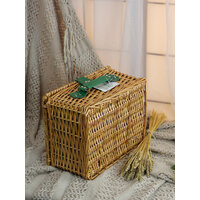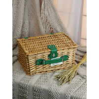 Внутренние размеры корзины составляют 14х33х23 см, что позволяет разместить все необходимые предметы для пикника. Фурнитура (ручки и крепления) выполнена в зеленом цвете, а отделка мелкой бело-зеленой клеткой придает набору стильный и современный вид.