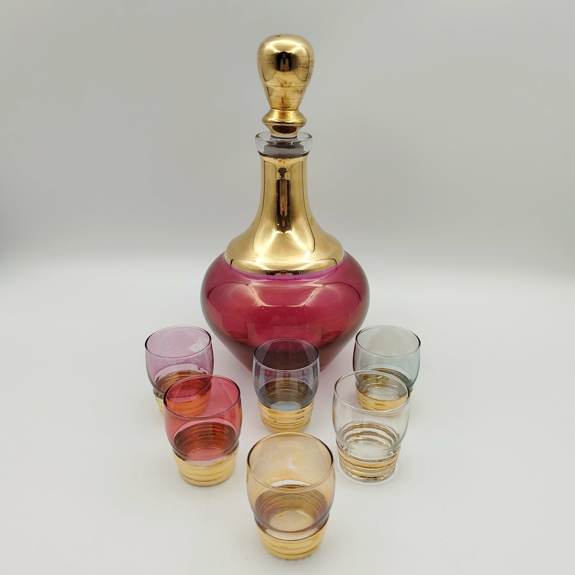 Купить Набор для подачи крепких напитков на 6 персон, стекло, роспись, люстр, золочение с доставкой по всей России.