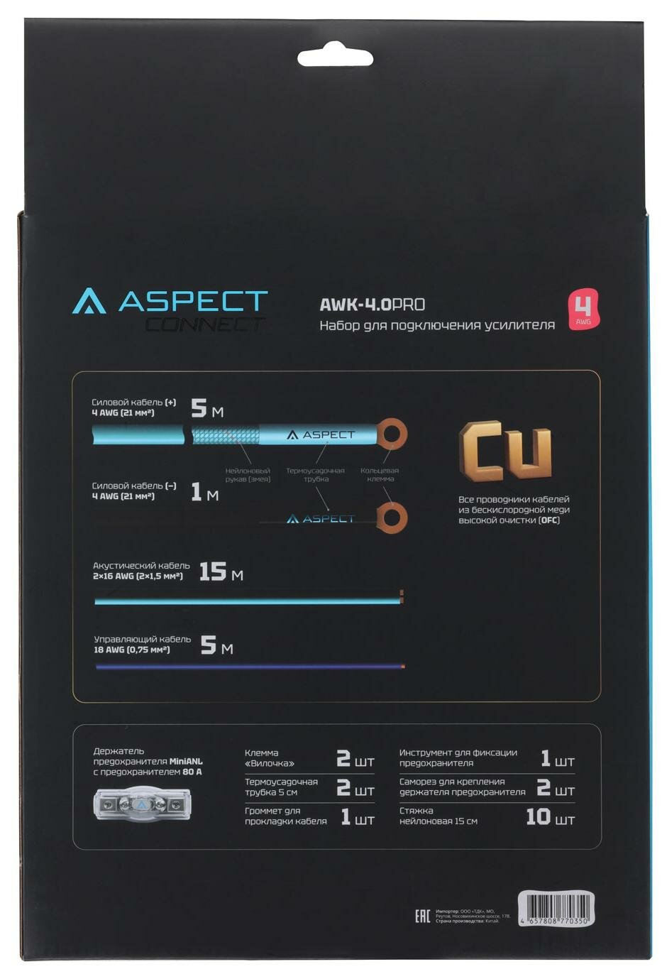 Набор для подключения усилителя Aspect AWK-4.0PRO, 4AWG, miniANL 80А, медь (OFC): сравнение цен, характеристики, фото, актуальное наличие и цены.