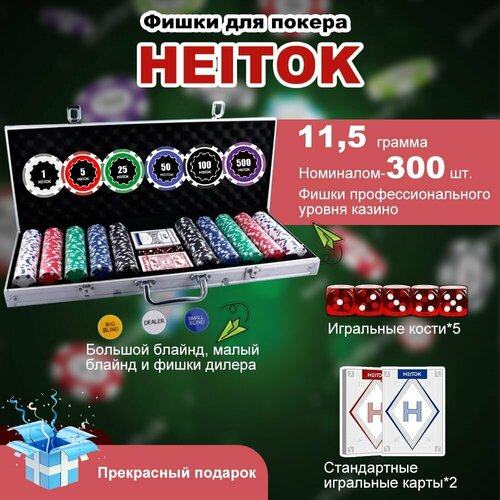 Набор для покера HEITOK, 300 фишек номиналом(11,5 г)