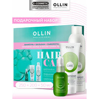 Подарочный набор для поврежденных волос OLLIN PROFESSIONAL Care: шампунь, кондиционер и сыворотка, 250+200+50 мл