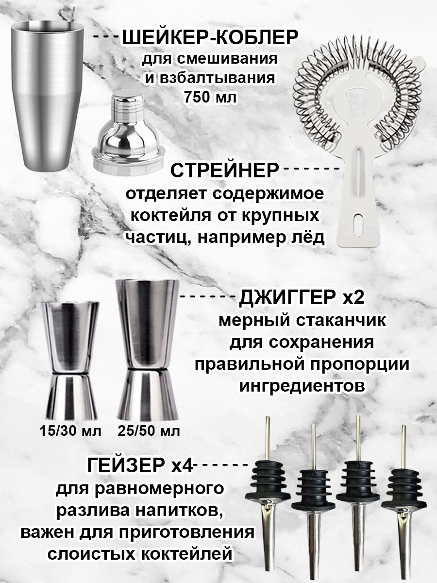Набор бармена 23 инструмента, Набор для приготовления коктейлей, Подарок мужчине: сравнение цен, характеристики, фото, актуальное наличие и цены.