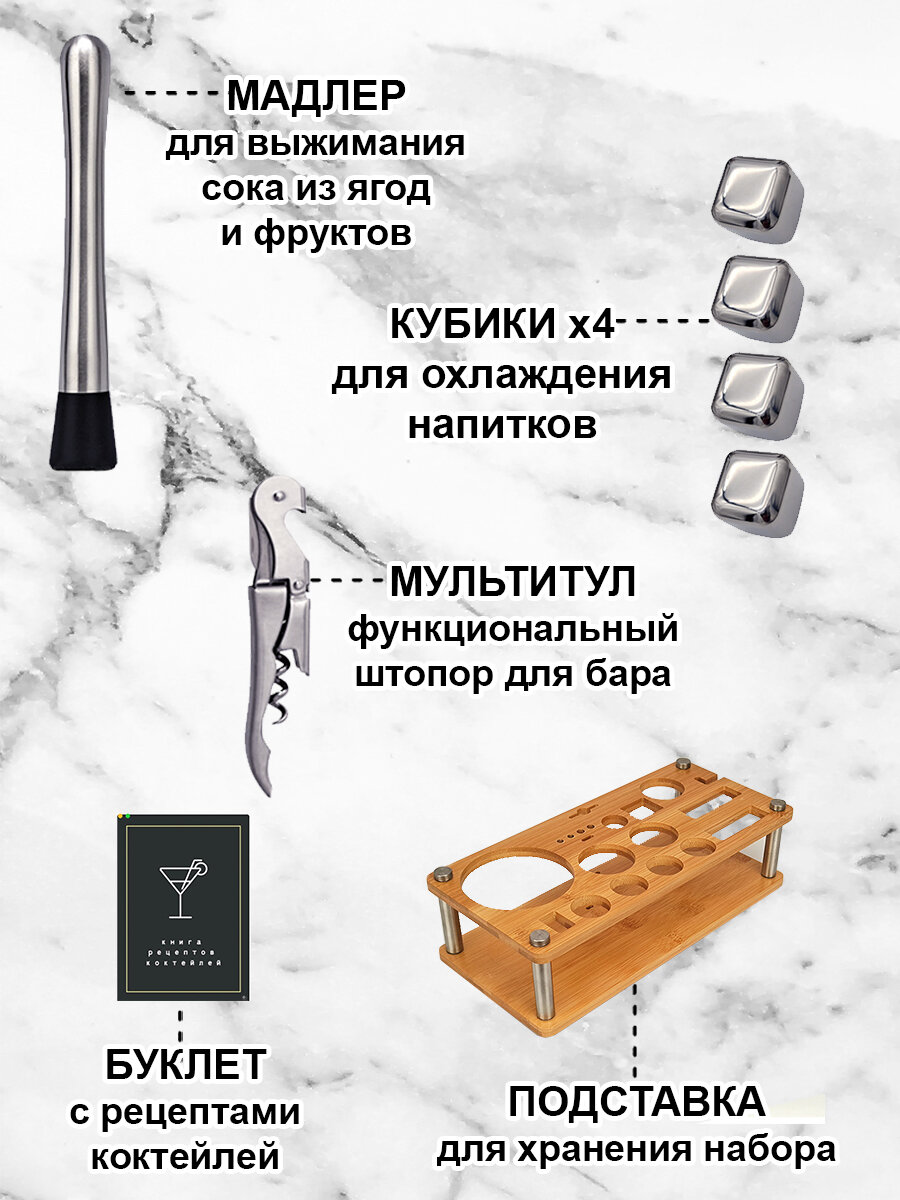 Купить Набор бармена 23 инструмента, Набор для приготовления коктейлей, Подарок мужчине с доставкой по всей России.
