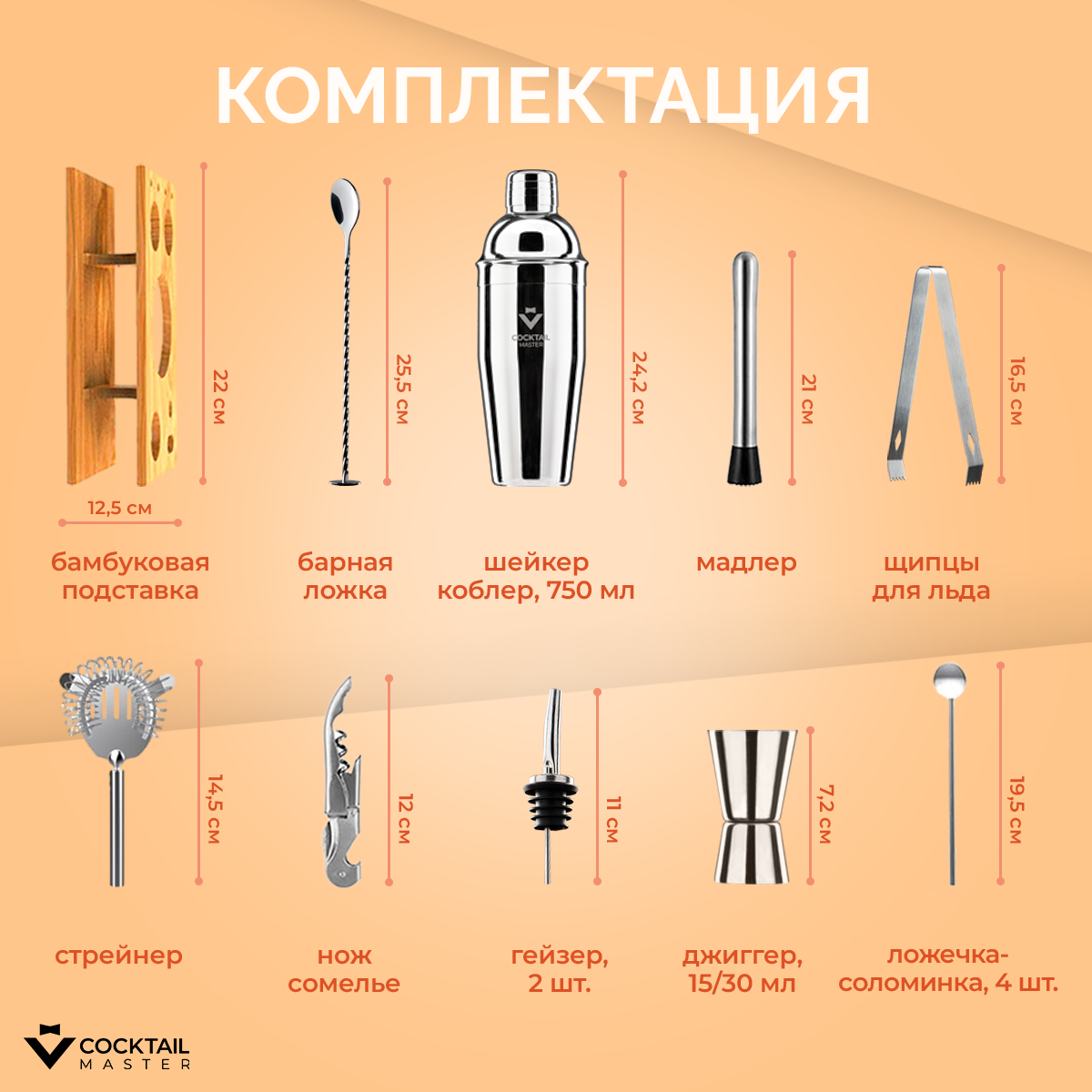 Купить Набор бармена для приготовления коктейлей из 14 предметов «Коктейль Мастер Про» с доставкой по всей России. Набор бармена для приготовления коктейлей из 14 предметов «Коктейль Мастер Про»: сравнение цен, характеристики, фото, актуальное наличие и цены.