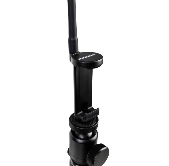Держатель для смартфона подходит к большинству размеров и моделей телефонов и идёт в комплекте с гибким креплением.