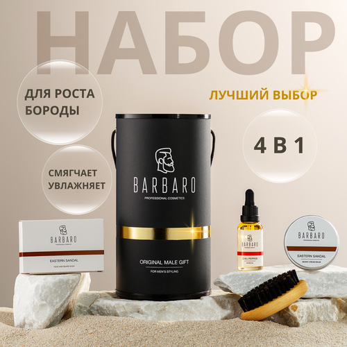 Мужской набор для роста бороды Barbaro, с маслом переца чили в подарочной тубе 4в1: сравнение цен, характеристики, фото, актуальное наличие и цены.