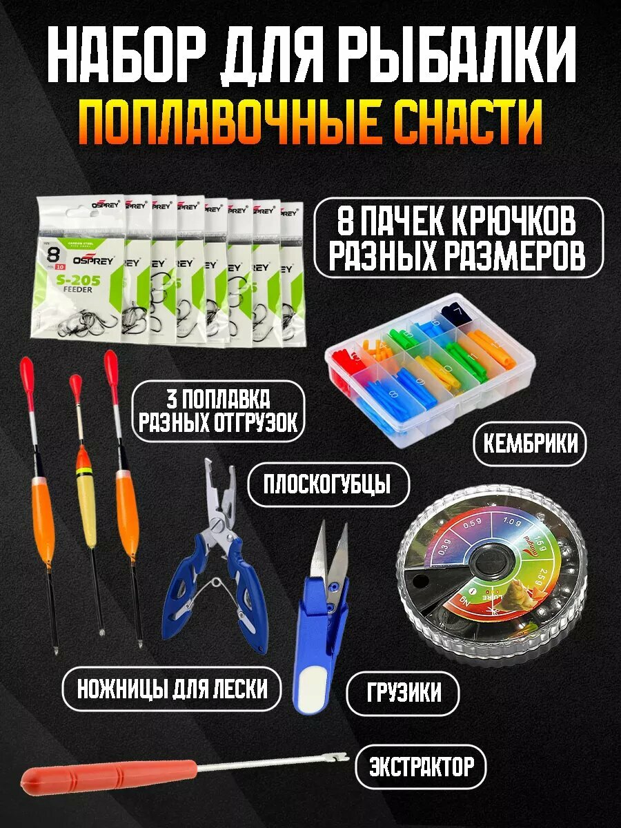 Набор для рыбалки с ножницами и плоскогубцами для лески, грузики. Отличный подарок рыбаку! Все аксессуары и снасти на поплавок! Набор для рыбалки подойдет в подарок, можно просто достать на рыбалке ящик и все уже готово! Можно рыбачить даже на палку! Потому что все снасти уже в комплекте Летний набор для рыбалки будет лучшим помощником на водоеме!