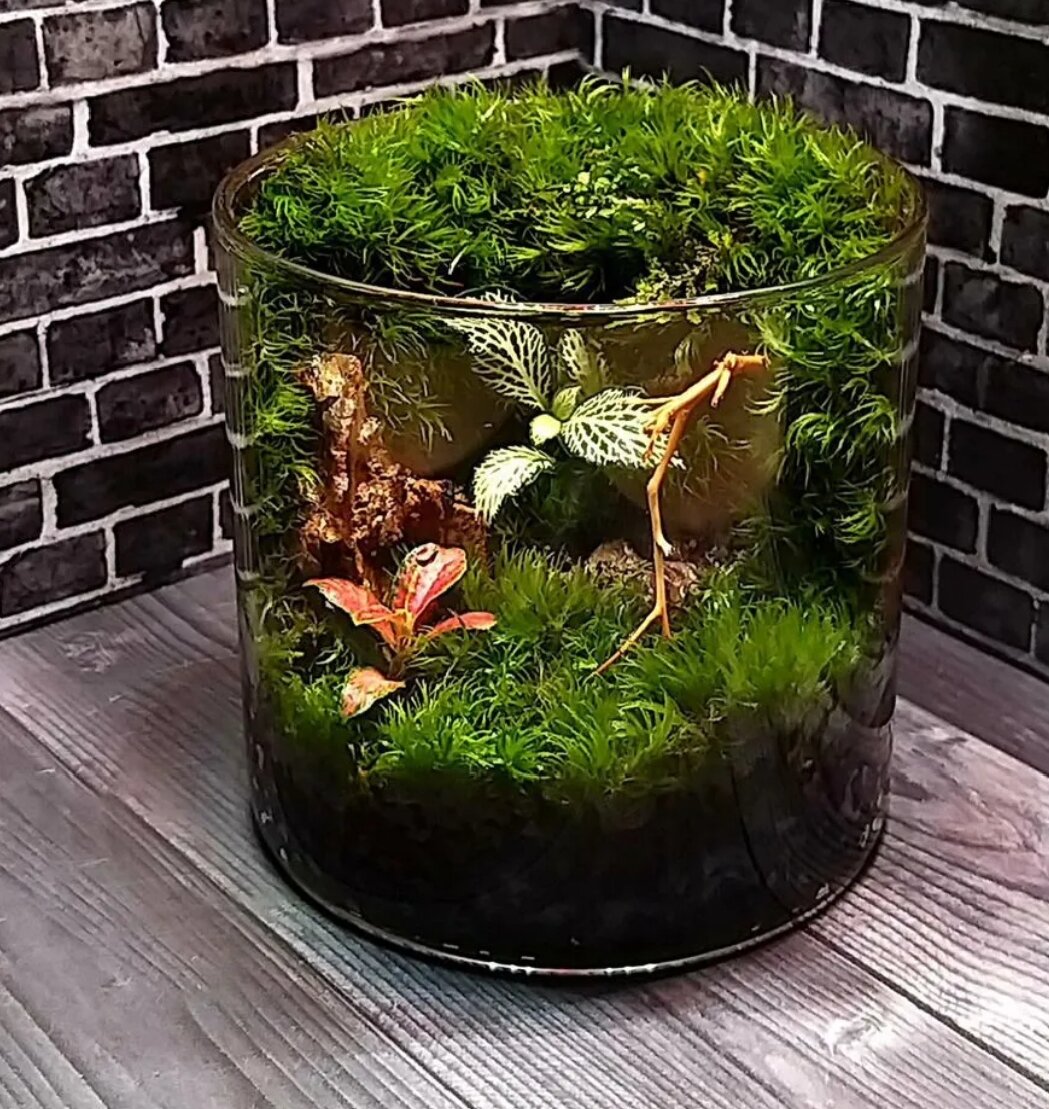 В набор входит: 1. Цилиндрическая ваза 10х10 см 2. Крышка круглая акриловая 10 см 3. Грунт 4. Глиносмесь для создания задней стенки 5. Мох живой 6. Растения 7. Кусочки корней азалии 8. Инструкция по созданию и уходу за флорариумом. 9. Пинцет, пульверизатор и салфетка для стекла. С 13.08.2025 добавлена подарочная коробка, qr-код инструкции в коробке.