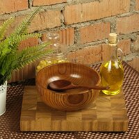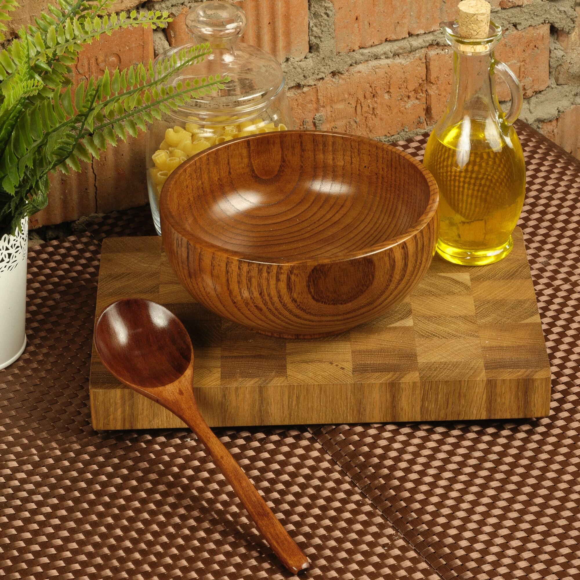 Купить Набор для сервировки, деревянная глубокая чаша, тарелка-миска из дерева Унаби — 17 см. с большой ложкой с доставкой по всей России.