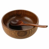 Набор для сервировки, деревянная глубокая чаша, тарелка-миска из дерева Унаби — 17 см. с большой ложкой