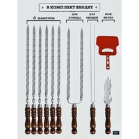 чехол, 6 шампуров, опахало,нож, шампур для курицы, шампур для овощей, кочерга