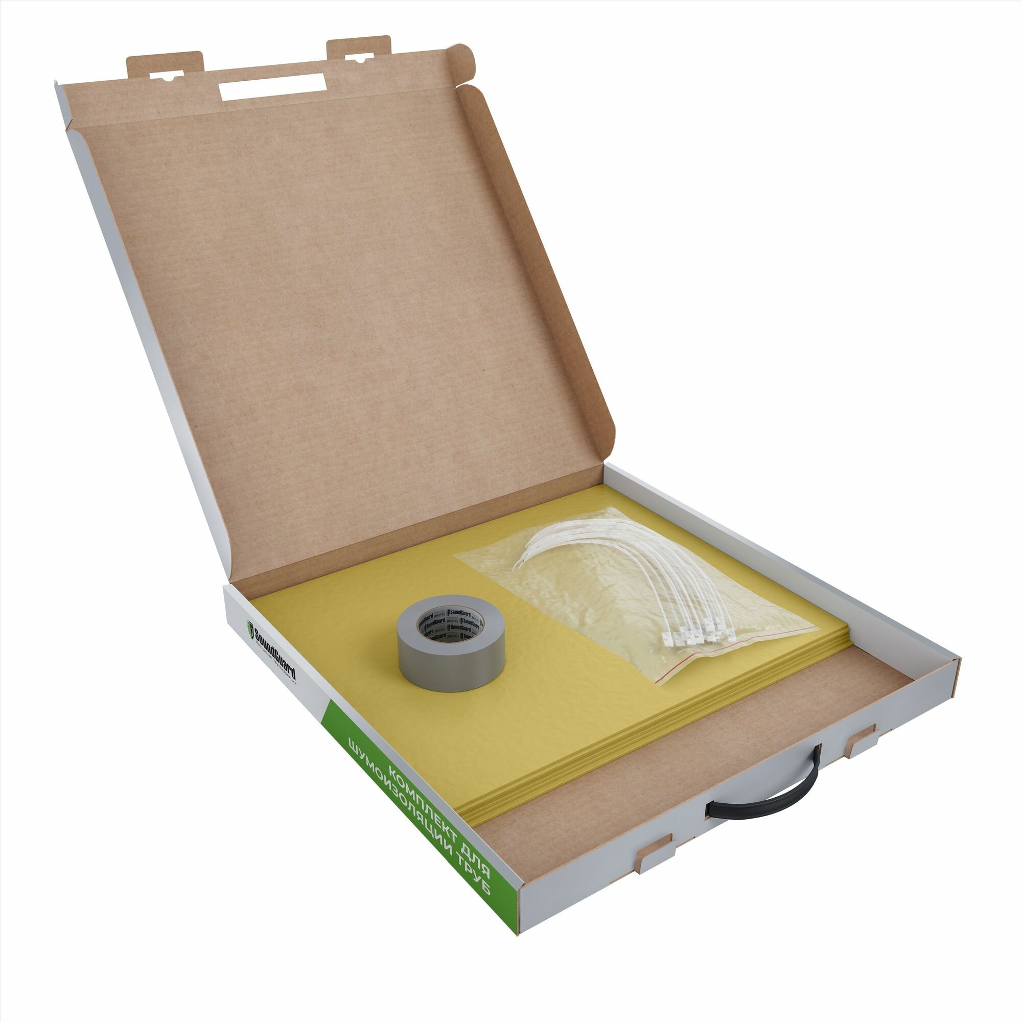 | Подробная комплектация | мембрана звукоизоляционная 400x500 - 6 шт; клейкая армированная водостойкая лента - 1 шт; пластиковые стяжки - 14 шт; комплект шумоизоляция труб; для канализационных труб; для фановых труб; обшивка труб; мембрана; шумоизоляция; звукоизоляция; шумка; изоляция |