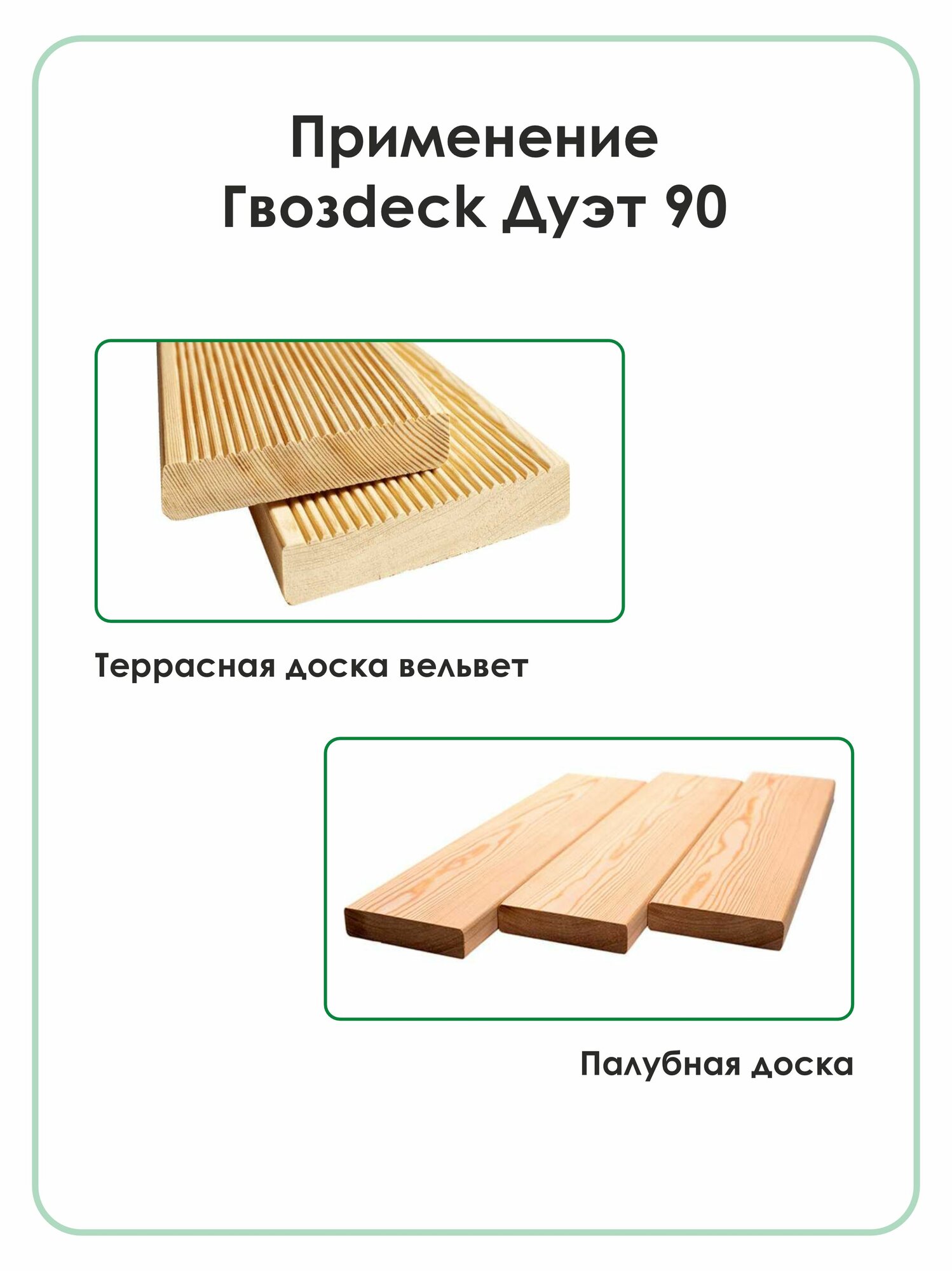 | Дополнительная информация | Уникальный скрытый крепеж для любых горизонтальных и вертикальных деревянных настилов |