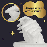 Оригинальный набор Слепок Рук из роликов с миллионами просмотров, это именно тот набор, который вы видели у блоггеров. Наши слепки получаются с первого раза. Кладем в два раза больше итальянской слепочной массы и профессионального скульптурного гипса. Создайте с набором для творчества и рукоделия Ваш уникальный и красивый слепок рук, который будет памятной вещью на долгие годы и оригинальным декором для дома. В набор для хобби и творчества по созданию скульптуры рук из гипса своими руками входят только качественные материалы. Слепок рук для двоих - это отличный парный подарок для влюбленных, а также приятный способ хорошо провести время вместе, запечатлеть момент и получить приятные эмоции. Набор для создания рук влюбленных отлично подойдет для пар как подарок на свадьбу молодоженам и на годовщину свадьбы друзьям или родителям. Подарите наш подарочный набор как оригинальный подарок на день рождения подруге, девушке, парню, на Новый год, 14 февраля ( День святого Валентина), 23 февраля ( День защитника отечества ) и 8 марта ( Международный женский день). Спасибо за выбор набора 3D слепок рук, мы очень старались при его создании. Отбирали качественные материалы, писали понятную инструкцию вложили любовь и душу и упаковали это все в емкость с очень красивой этикеткой