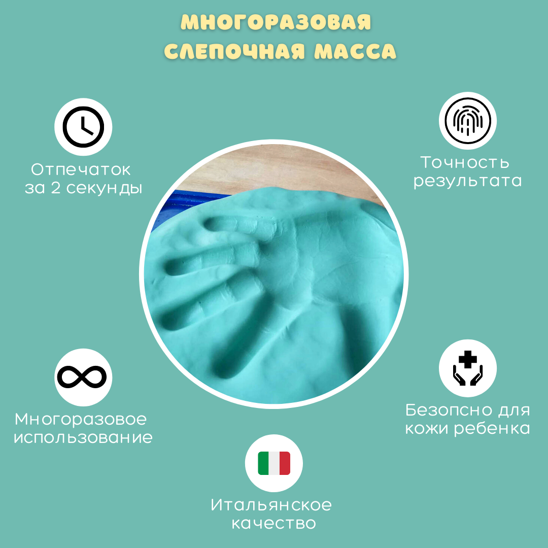 Слепочную массу возможно использовать неограниченное количество раз. Возможность делать слепки нескольким детям или в разном возрасте.
