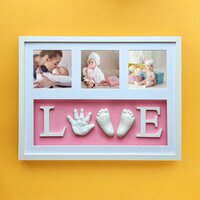 Купить Набор для слепков ручек и ножек малышей с белой рамкой (композиция LOVE розовый фон) Арт-Слепок, с многоразовым материалом. Подарок новорожденному с доставкой по всей России.