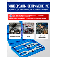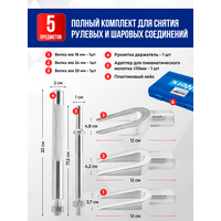 Набор для снятия шаровых опор, рулевых наконечников, 5 предметов. Универсальный набор для демонтажа шаровых опор и рулевых тяг легковых автомобилей, а также легкого коммерческого транспорта.