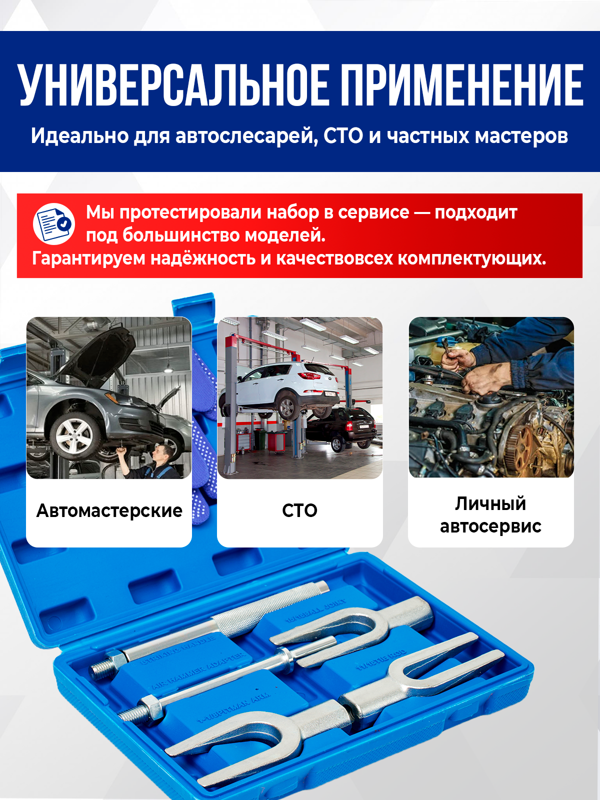 Купить Набор для снятия рулевых и шаровых соединений, полный комплект в кейсе с доставкой по всей России. Набор для снятия рулевых и шаровых соединений, полный комплект в кейсе: сравнение цен, характеристики, фото, актуальное наличие и цены.