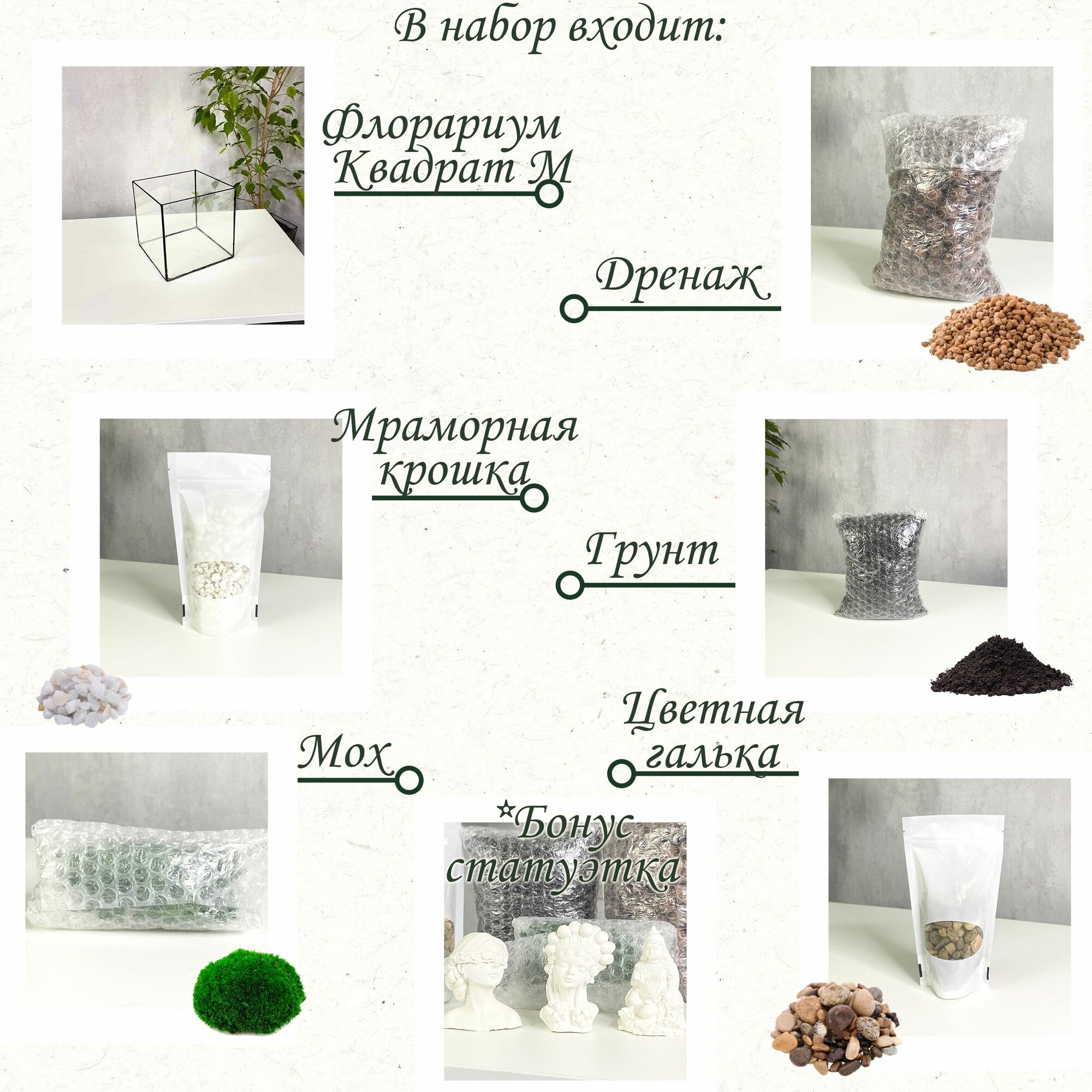 Купить Набор для создания флорариума: форма Квадрат M, средний собери свой мини сад с доставкой по всей России.