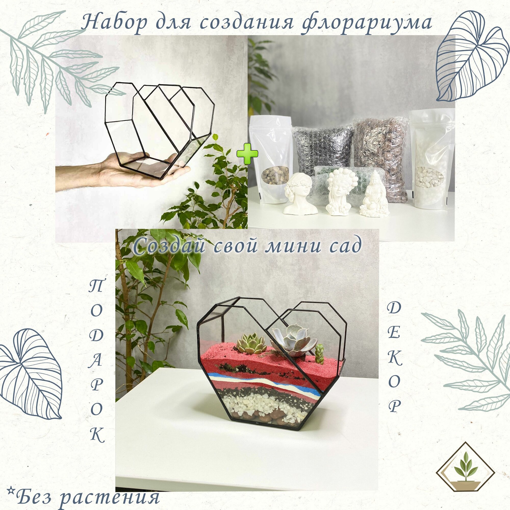 Купить Набор для создания флорариума: форма Сердце собери свой мини сад с доставкой по всей России.