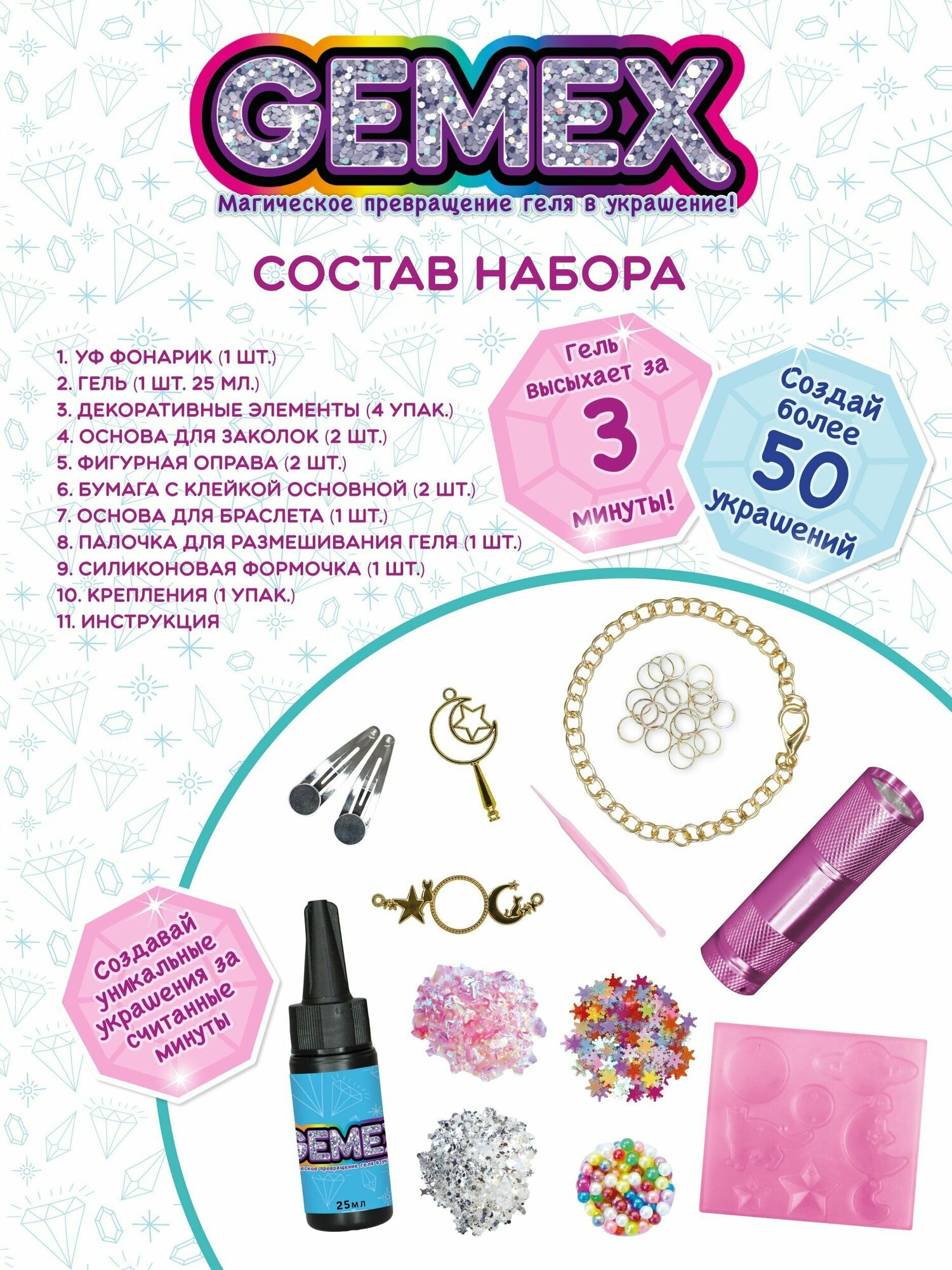 Набор GEMEX – творческий набор для создания уникальных украшений и аксессуаров из полимерного геля с использованием УФ лампы. Теперь вы сможете стать настоящим дизайнером своих собственных украшений!