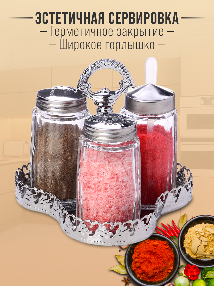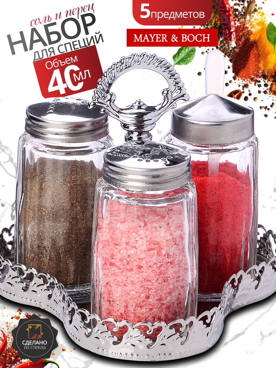 Набор для специй MAYER & BOCH MB, стекло/нержавеющая сталь, 5 предметов, высота 6,5 см: сравнение цен, характеристики, фото, актуальное наличие и цены.