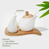 Купить Набор для специй на дерев. подставке «Bella Tenero. Капельки» солонка, перечница, сахарница с доставкой по всей России.