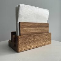 Финальный штрих на кухонном столе - Набор для специй с салфетницей, полностью выполненный из массива дуба, покрытый безопасным пищевым льняным маслом - оно защищает поверхность дерева и не даёт никакого привкуса специям.