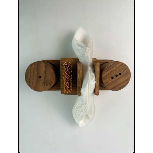 Финальный штрих на кухонном столе - Набор для специй с салфетницей, полностью выполненный из массива дуба, покрытый безопасным пищевым льняным маслом - оно защищает поверхность дерева и не даёт никакого привкуса специям.