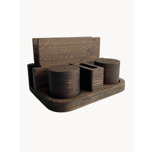 Купить Набор для специй с салфетницей морёный дуб 016-1 с доставкой по всей России. Набор для специй с салфетницей морёный дуб 016-1: сравнение цен, характеристики, фото, актуальное наличие и цены.