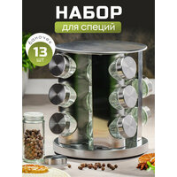 Набор для специй стеклянный с подставкой, 13 предметов, нержавеющая сталь, серебристый, Y3-960: сравнение цен, характеристики, фото, актуальное наличие и цены.