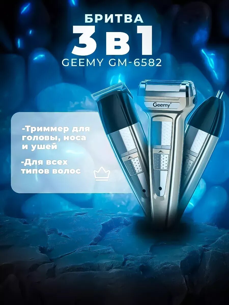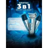 Набор для стрижки Geemy GM-6582, 3в1, бритва+триммер+насадка для носа и ушей, 3 насадки: сравнение цен, характеристики, фото, актуальное наличие и цены.