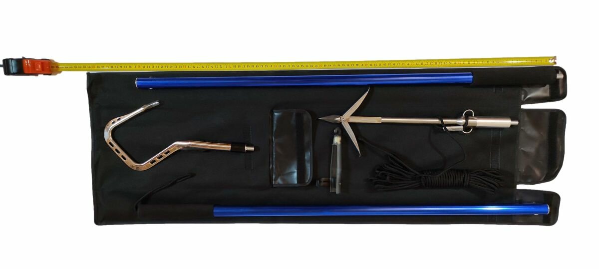 Купить Набор для трофейной рыбалки 2+1 BLUE MARLIN состоящий из рукоятки 90-180см, головки багра 4″, головки гарпуна, мощного троса и чехла с доставкой по всей России.