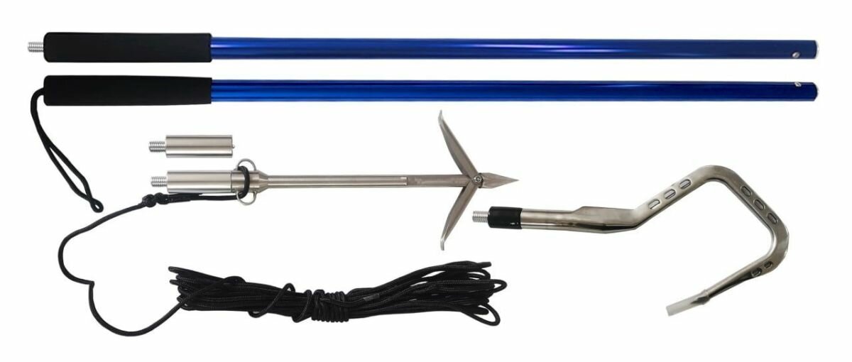 Набор для трофейной рыбалки 2+1 BLUE MARLIN состоящий из рукоятки 90-180см, головки багра 4″, головки гарпуна, мощного троса и чехла: сравнение цен, характеристики, фото, актуальное наличие и цены.