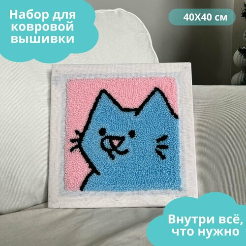 Набор для творчества, набор для вышивания в ковровой технике «Голубой котик» 40х40см: сравнение цен, характеристики, фото, актуальное наличие и цены.