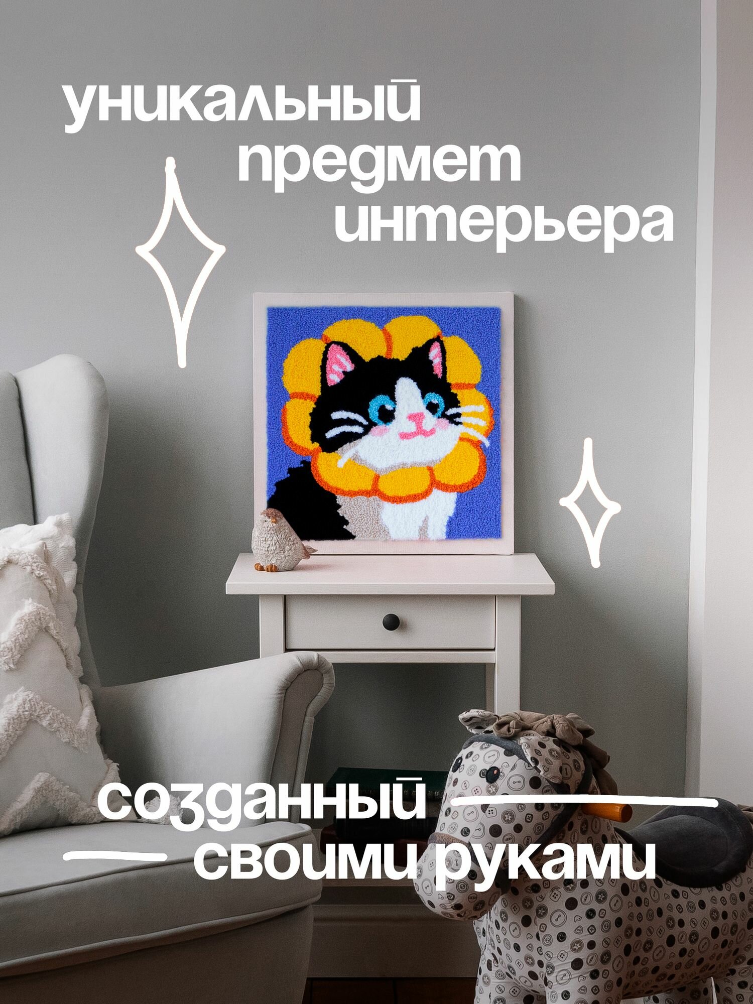 Набор для творчества, набор для вышивания в ковровой технике «Кот-цветок» 40х40см: сравнение цен, характеристики, фото, актуальное наличие и цены.