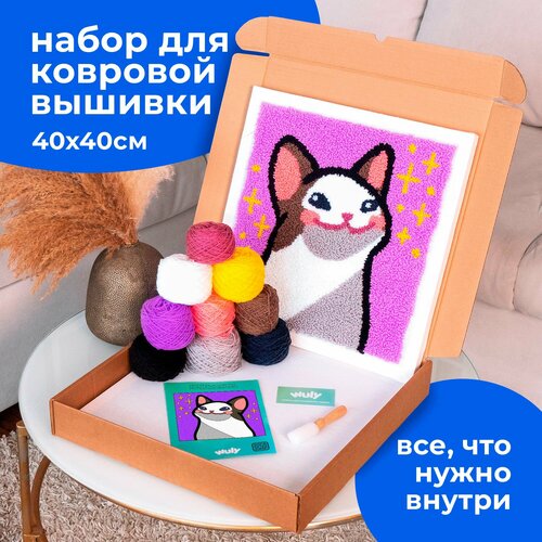 Набор для творчества, набор для вышивания в ковровой технике «Мемный котик 1» 40х40см: сравнение цен, характеристики, фото, актуальное наличие и цены.