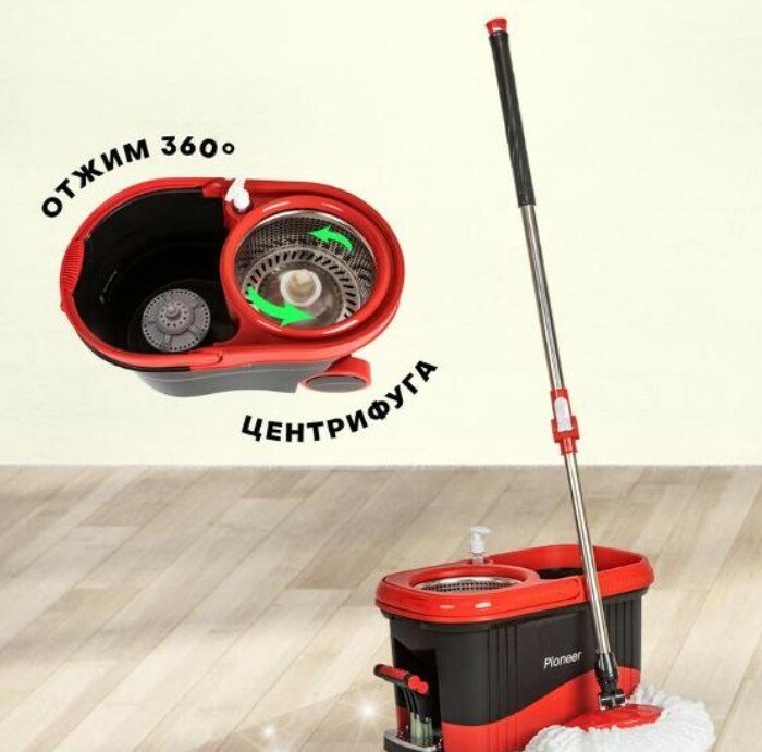 Набор для уборки Pioneer 7112S: швабра, ведро с педалью, насадка из микрофибры, цвет чёрный- красный,: сравнение цен, характеристики, фото, актуальное наличие и цены.