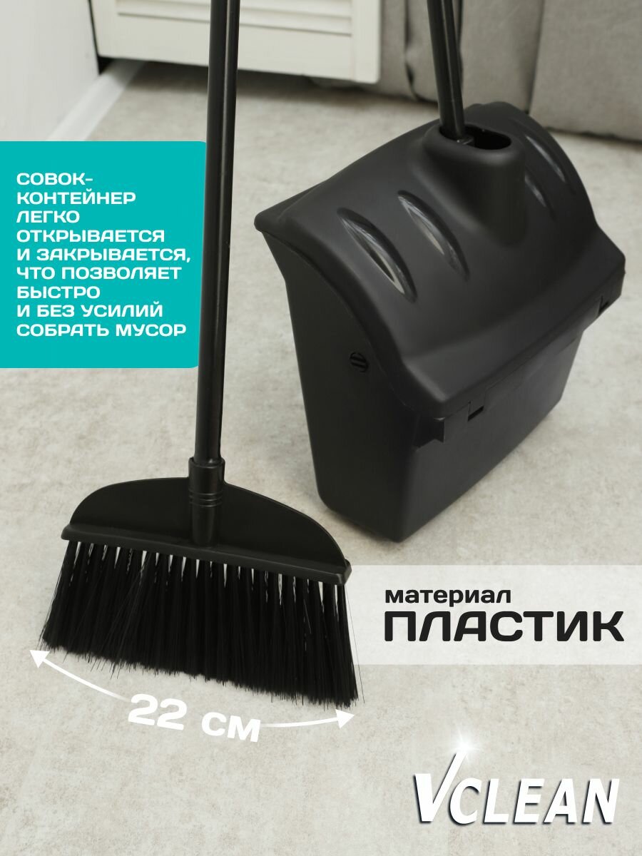Купить Набор для уборки пола совок-контейнер с крышкой и щетка Vclean, черный с доставкой по всей России. Набор для уборки пола совок-контейнер с крышкой и щетка Vclean, черный: сравнение цен, характеристики, фото, актуальное наличие и цены.