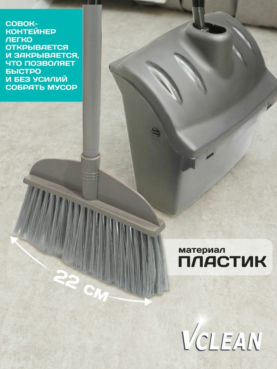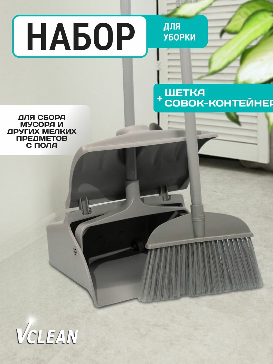 Купить Набор для уборки пола совок-контейнер с крышкой и щетка Vclean, серый с доставкой по всей России. Набор для уборки пола совок-контейнер с крышкой и щетка Vclean, серый: сравнение цен, характеристики, фото, актуальное наличие и цены.