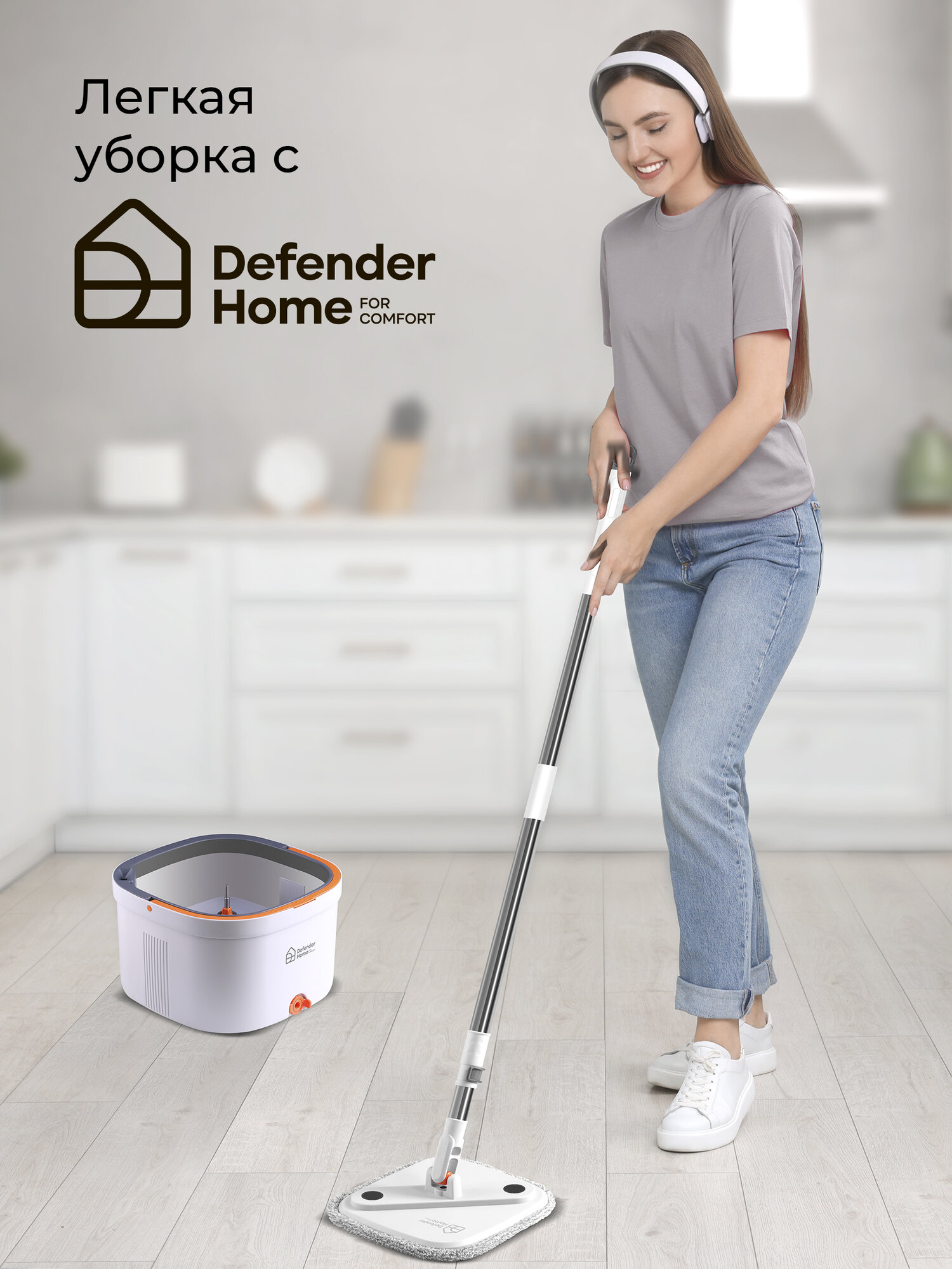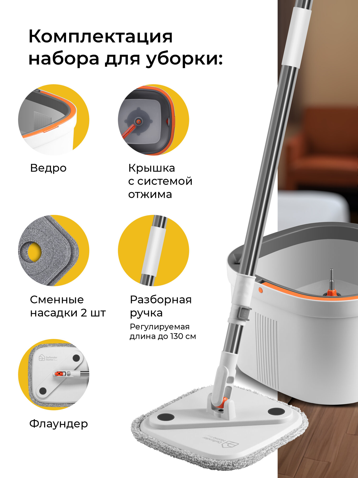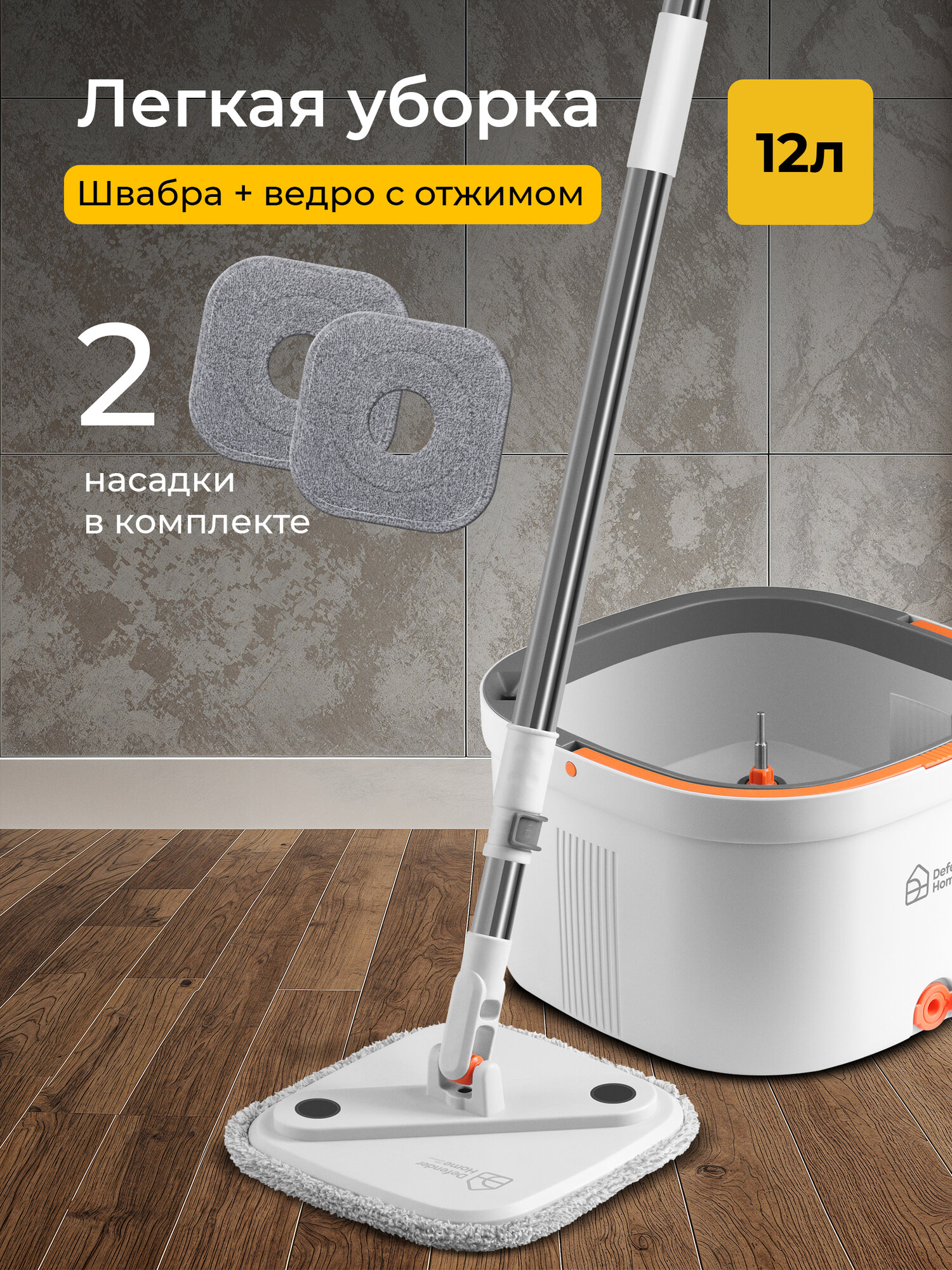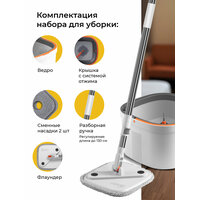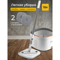 Купить Набор для уборки со шваброй, умная швабра с отжимом и ведром 12л и с 2 насадками с доставкой по всей России.