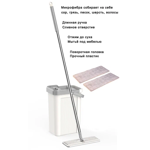 Ведро выполнено из прочного ABS пластика, что гарантирует его долговечность. В комплекте идут две насадки из микрофибры.