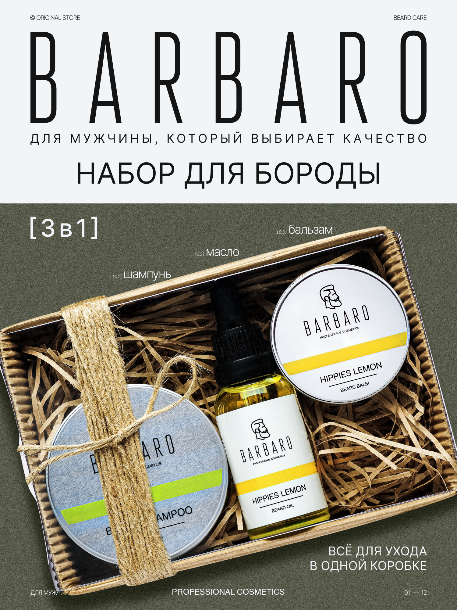 Мужской подарочный набор для ухода за бородой и усов Barbaro, шампунь, масло и бальзам, 3 в 1: сравнение цен, характеристики, фото, актуальное наличие и цены.