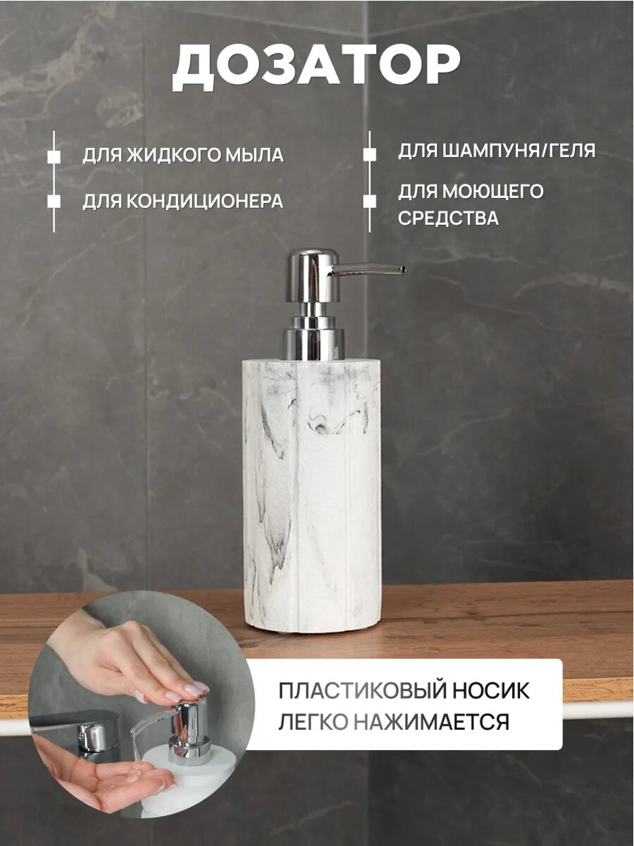 Мыльница и стакан создают удобное пространство на полке или раковине, а подставка для мыла помогает поддерживать порядок и чистоту в месте умывания, легко моется. Дозатор для жидкого мыла отлично подойдет также для шампуня или кондиционера. Этот набор мыльница и стакан для зубных щеток идеально комбинируются для создания гармоничного декора.